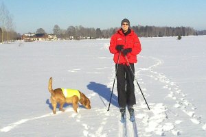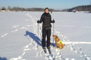 Igår var jag och Filip dessutom och åkte skidor hos hans föräldrar. Vi har ingen dragsele till Nova så hon sprang fritt vid spåren. Mysigt var det, men hade nog behövt en sele för att hon skulle bli trött, hon tyckte våran runda var alldeles för kort och undrade varför vi åkte mitt ute på ett fält hela tiden när man kan nosa efter spår i skogskanterna…..