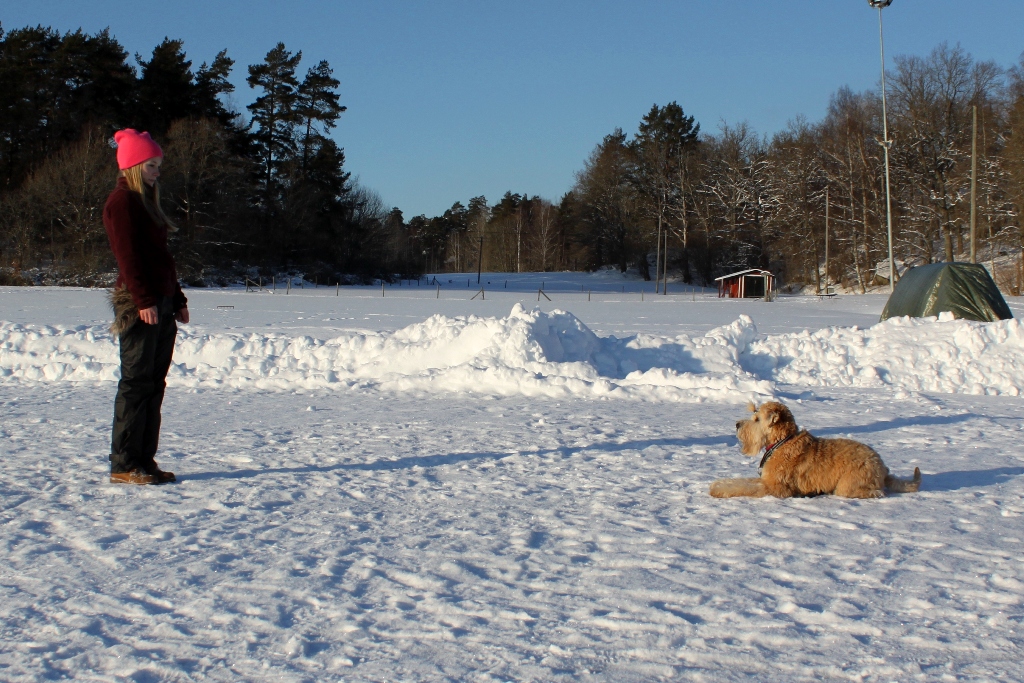 Idag har jag och Elin med Lycke varit och tränat på Uppsala Brukshundklubb. De har skottat planen och solen sken för fullt så kunde inte bli bättre förutsättningar. Först innan jag skulle åka var jag något nervös, åka till Brukshundklubben kändes som att det skulle vara så stort och att man skulle prestera. Men jag peppade mig själv med att fokusera på det viktiga; att komma igång, fokusera på att ha roligt när jag tränar och att införa avslappning mellan, före och efter moment. Avslappningen för att jag ska känna ett lugn som jag vet att Nova tränar mycket bättre under. Så skrev jag upp en lista på saker som vi kunde göra på träningen och vi betade av dem alla med vad jag tycker väldigt lyckade resultat!