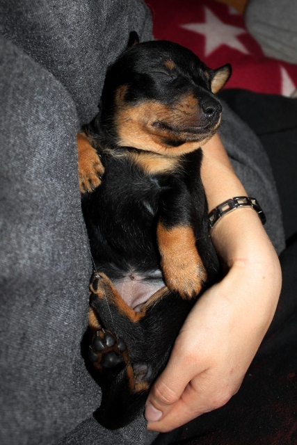 Innan vi var klar med fotograferingen somnade valparna allt eftersom och när vi till sist kom till Exxcellent så hade hon redan hunnit somna djupt så det blev en bild på det istället 😉
