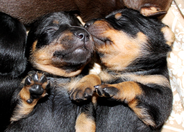 Det där med att lägga upp film var inte så enkelt som jag trott. Efter filmande av 10 minuter planlöst virrande och busande av valpar tänkte jag att jag kunde klippa i filmen för att göra den lättare att ladda upp och intressantare för den som tittar. Dessvärre visade det sig att programmet som är i datorn inte stödjer formatet på filmen från kameran (Canon 500D). Ska se om jag kan trolla fram ett program som klipper och även kan ta ut stillbilder ur filmen, annars får jag ta och filma om och kanske göra kortare snuttar. Tänkte jag skulle filma på nytt nyss, men de små sov som stockar och jag insåg ganska snabbt att här blir det inget mer lek fören på ett tag!