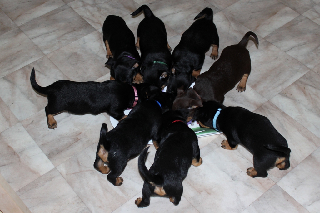 Här är en bild när de äter och även över deras nya halsband!
