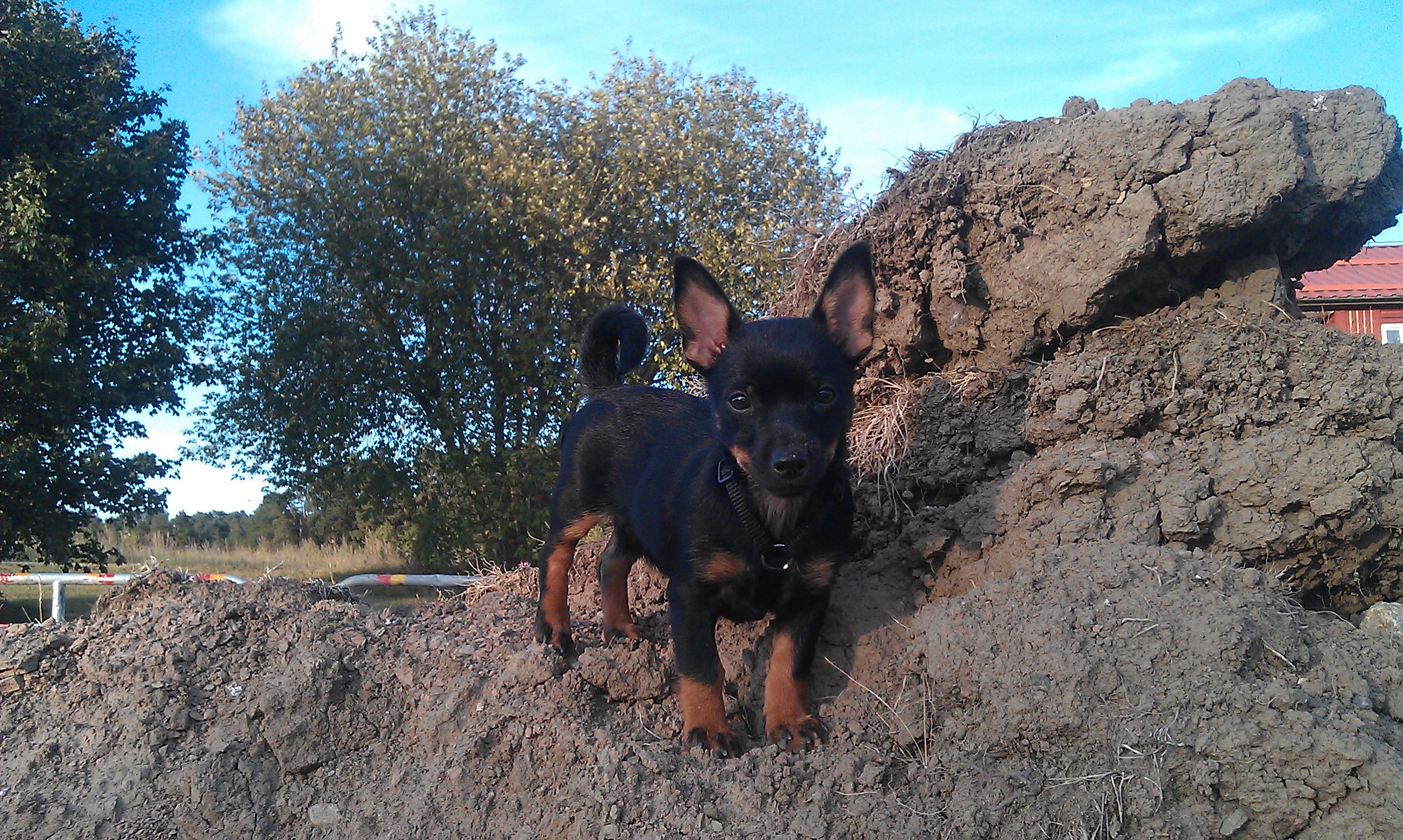 Xxantia som fick stanna här hemma heter numera Tuva. Hon kollar varje dag om hon blivit nog stor för att själv ta sig upp i soffan (Hon når inte riktigt än). Hon gör mig väldigt glad varje gång jag ser henne. Det känns verklgien rätt med henne, och jag upplever henne som väldigt tillgänglig och samarbetsvillig. Apportera till viss del gör hon, och hon lystrar bra även om jag inte gjort någon seriös inkallningsövning på henne, så just nu kommer hon på valparna, tuva, här osv… Hon kom även en gång när jag ropade Filip, det var lite kul… Belöning kanske man få på det mesta tänkte hon?