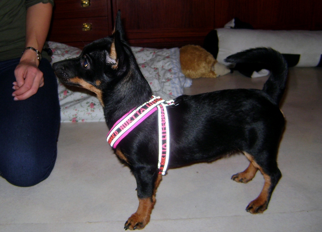 Tuva har vuxit ur sin gamla sele och har fått en ny ”Hurtta Lifeguard” att spatsera i. Den sitter också väldigt bra och har reflexer (gillar Hurtta!). Strl 45. Rätt dyr däremot…