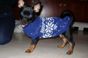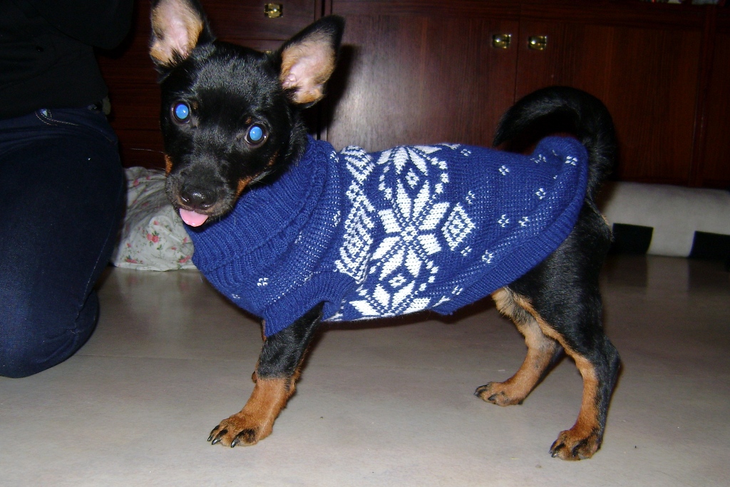 Jeg bruker strikkede gensere på hundene hele vinterhalvåret. Jeg synes hundene får bedre bevegelsesfrihet i genserene enn de gjør med dekken på. Dekken bruker jeg i tillegg når det er spesielt kaldt, og når de har treningspauser i bilen. Gensere strikker jeg sel i ullgarn. Da isolerer de selv om de blir kalde. Loppa har allerede en rosa og brun genser 🙂 Tutu kommer hun nok ikke til å få, da 😉