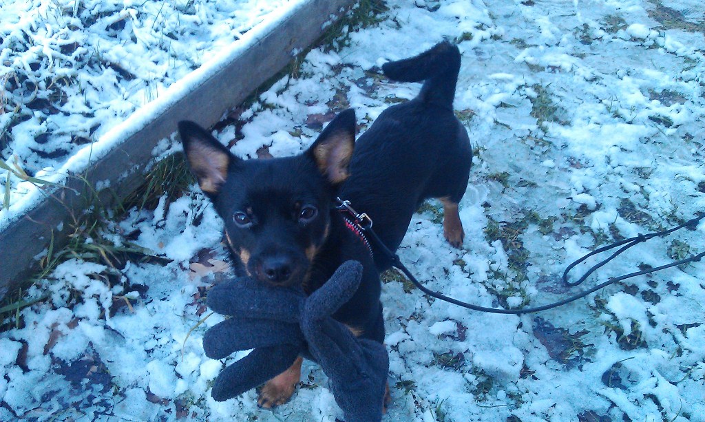 Det går mot juletider och även då kallare tider. Det har kommit en omgång snö (som sedan smälte bort). Tuva blev iallafall lycklig men fundersam. Hon drog slutsatsen att med snö kan man bara göra två saker; 1. Äta, 2. Springa fort som tusan för det kittlar under tassarna 😉