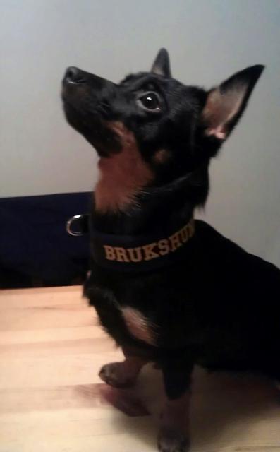Nu har Tuvas halsband kommit som jag beställde på Mårtenutställningens marknad.