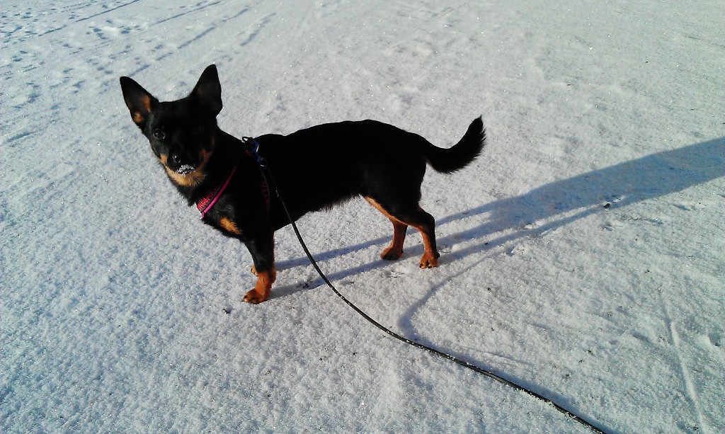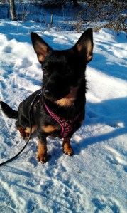 Mitt nästa plan i verket var att få henne att förstå att det här var en såndär ”den här dagen får jag inte missa dag” istället för en ”allt jag missat i skolan under veckan ta-igen-dag”. Så jag gick fot, gjorde alla mina behov, lekte med hennes vantar, och visade dessutom upp ett exemplariskt sitta kvar och stanna kommando (även om jag aldrig riktigt förstått vad den sista är tll för – men om det nu gör matte glad!)