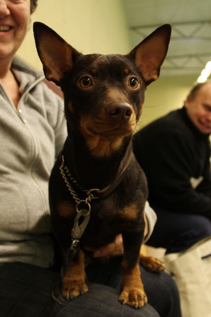 På utställningsplatsen fanns även Anton, Julia och Vila som, som alltid, riktigt glänste i ringen! Vila vet verkligen hur det här med utställning ska gå till och det ser alltid så mysigt ut när hon går genom ringen och sträcker på sig och viftar på svansen! Så hade vi även Emelie med welshen Neo som passade på att miljöträna med alla oss små svarta/bruna. Han skötte sig utmärkt och fick mycket nyttig miljöträning.