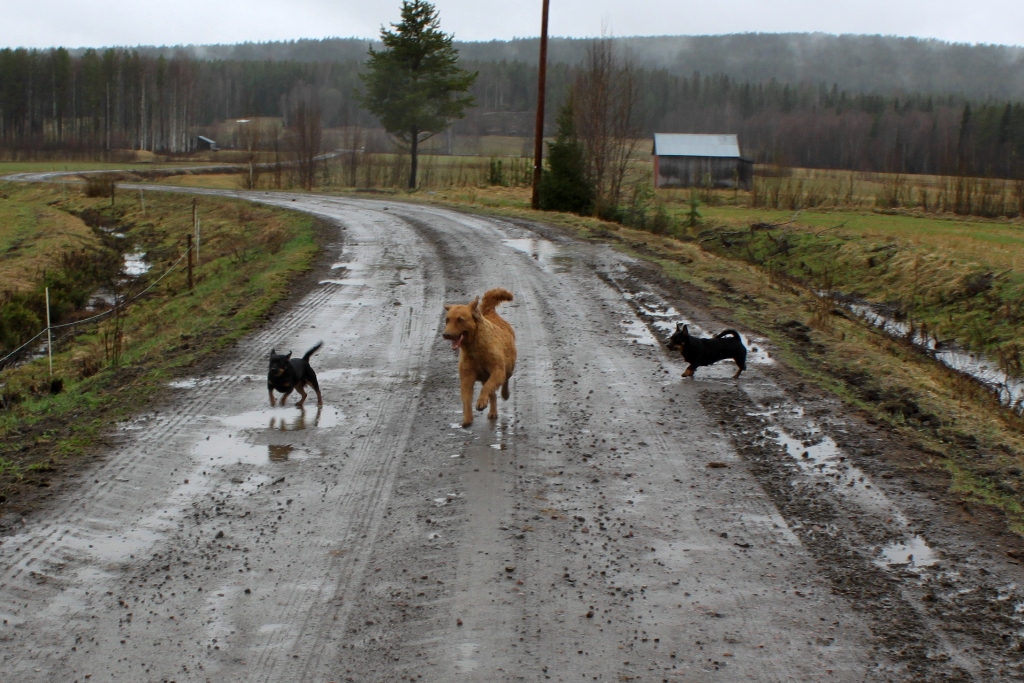 Sedan har vi hälsat på hundarna i Brobyn. Vädret var inte det bästa under resan, men det verkade inte hindra hundarna från att leka när de sågs.