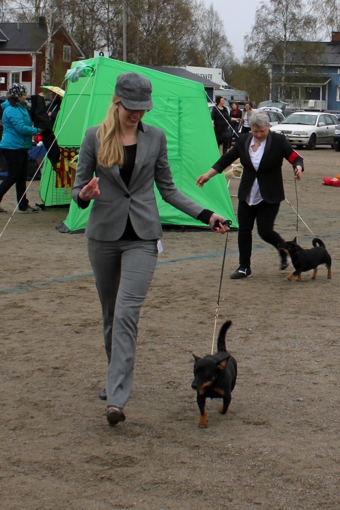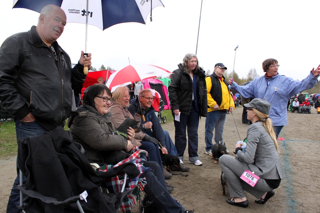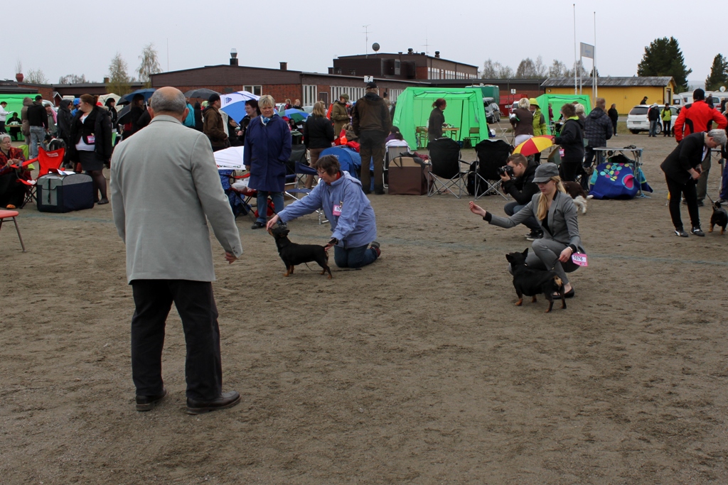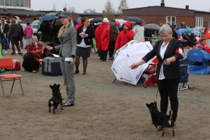 På söndag var det äntligen dags för nationell utställning i Sjulsnäs, Piteå. Det var jag, Filip och min mor som kom med Tuva och Ronja. På plats fanns dessutom två av valparna ur kullen; Dixxie (Exxcellent) och Zelda (Roxxana) med mattar och hussar. Det var jätteroligt att träffa både valpar och ägare igen! Dessutom var min uppfödare Lena Tegström och Conny med deras heeler på plats – i slutändan blev vi ett stort gäng och man märkte knappt att det regna och var kallt med allt som skulle fixas och det goda sällskapet 🙂