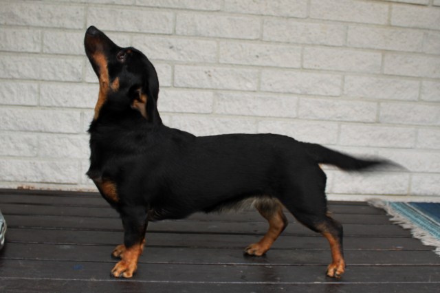 Dixxie viftar glatt på svansen när hon står uppställd! 🙂