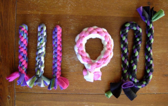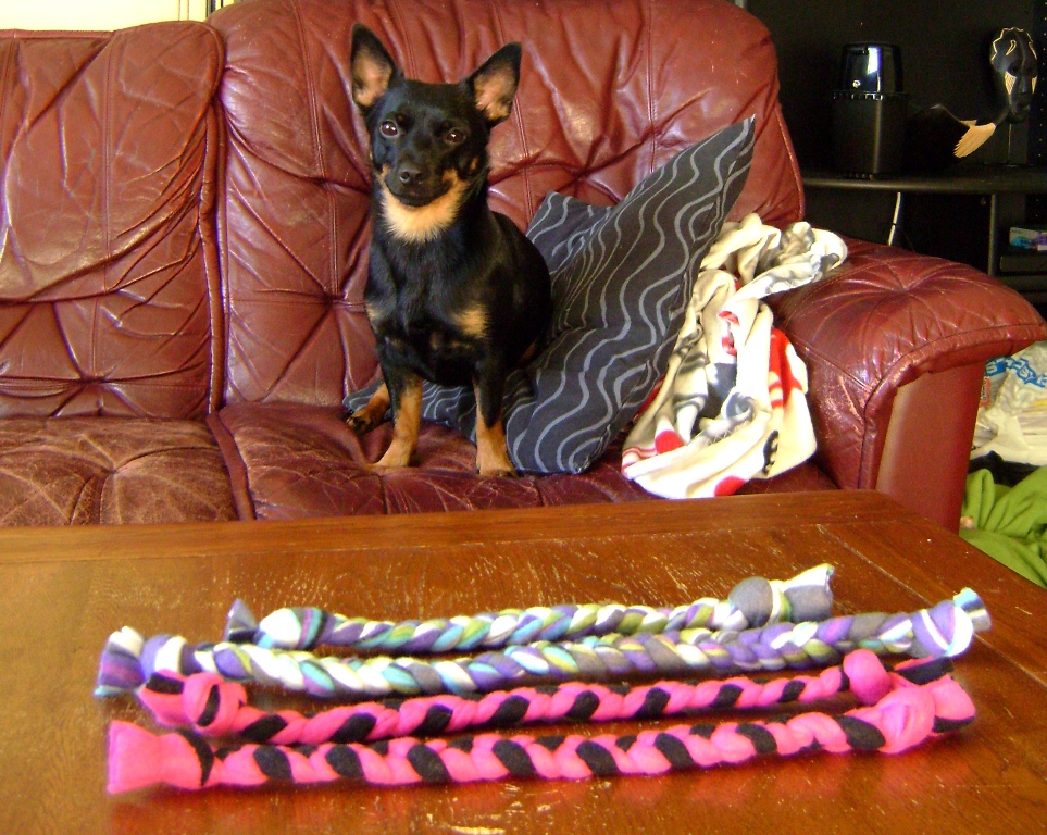Det var alldeles för roligt att tillverka hundleksaker av rep och fleece, så om någon vill beställa så pysslar jag gärna! 😉