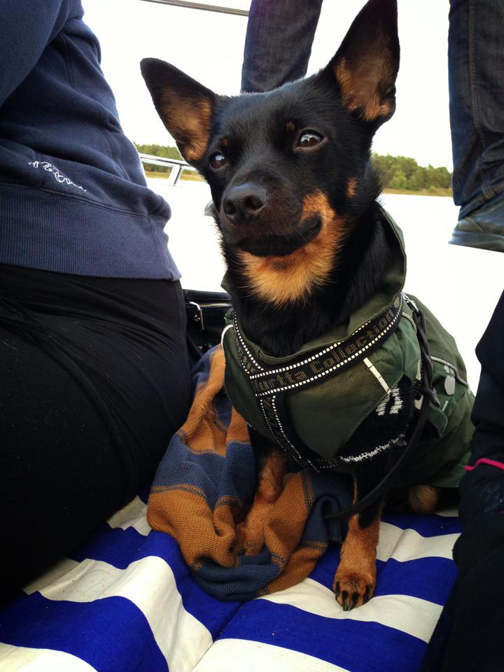 Det var Ronjas första båttur och hon skötte det imponerande! Inget pip eller gnäll alls men hade nog lätt kastat sig i vattnet efter fiskarna och sjögränset som vi drog upp om vi inte hindrat henne!