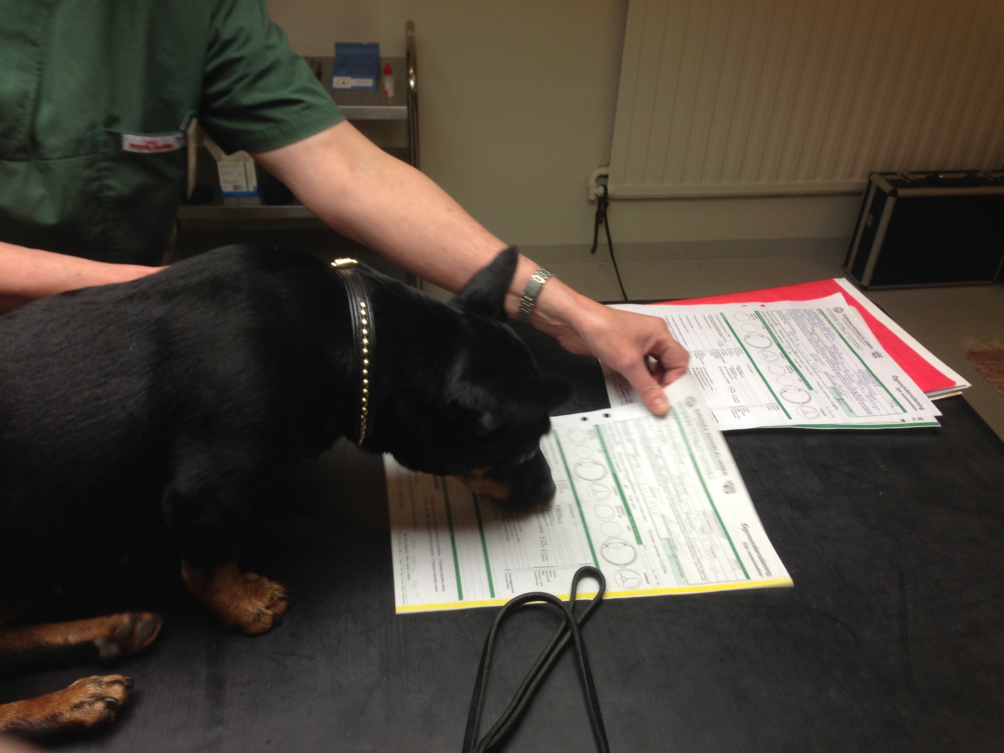 En patellaundersökning utfördes också för att se att Ronja fortfarande har friska knäleder. Det finns fall av hundar som trots friska knäleder vid ett-års ålder utvecklar patellaluxation senare i livet. Naturligtvis är jag nyfiken på att ta reda på hur vanligt det är. Om Ronja ska komma att gå vidare i avel så vill jag naturligtvis även veta att hon fortfarande är frisk. Knäna satt där de skulle och kunde inte rubbas, så dubbelglädje idag! Jag tror inte att det är aktuellt för valpköparna att idag testa om hundar för knälederna om de är testade vid ett års ålder och man inte har uppmärksammat några problem. Utan främst kan det här vara något för uppfödarna att lära sig mer om.