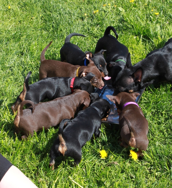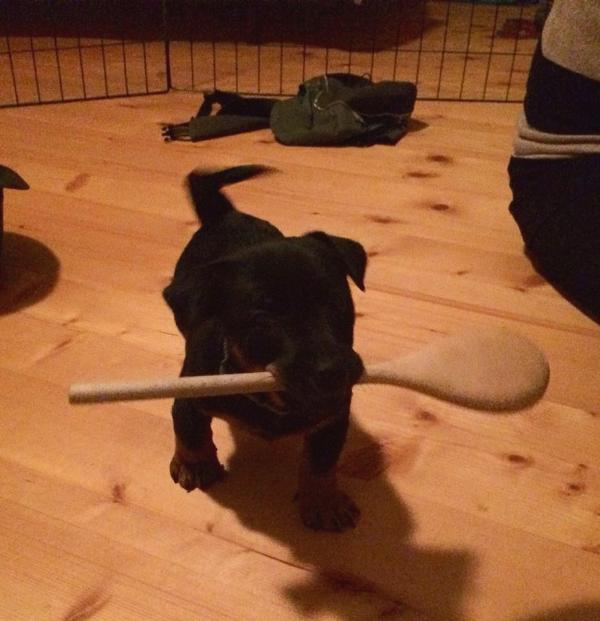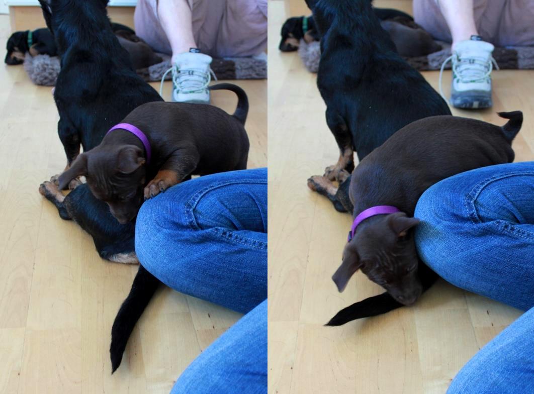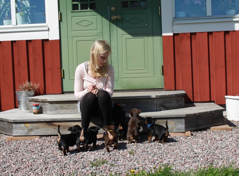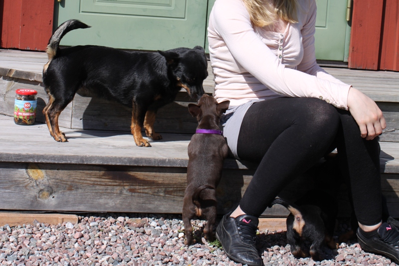 Tiden går fort, fort, fort, och det är tight att hinna med uppdateringarna mellan gångerna fast det händer så mycket roligt jag vill skriva om! Under helgen har vi haft många besök, gjort valptest, biltränat, så det vanliga pysslet med att klippa klor, fota, väga och allt som matte hittar på. Dessutom har vi haft finbesök från min fina studiekamrat Julia, Anton och fina heelern Vila, under hela helgen då de numera bor permanent i Linköping. Besöket var väldigt uppskattat och jag fick mycket hjälp under helgen med att städa och fixa hos valparna!