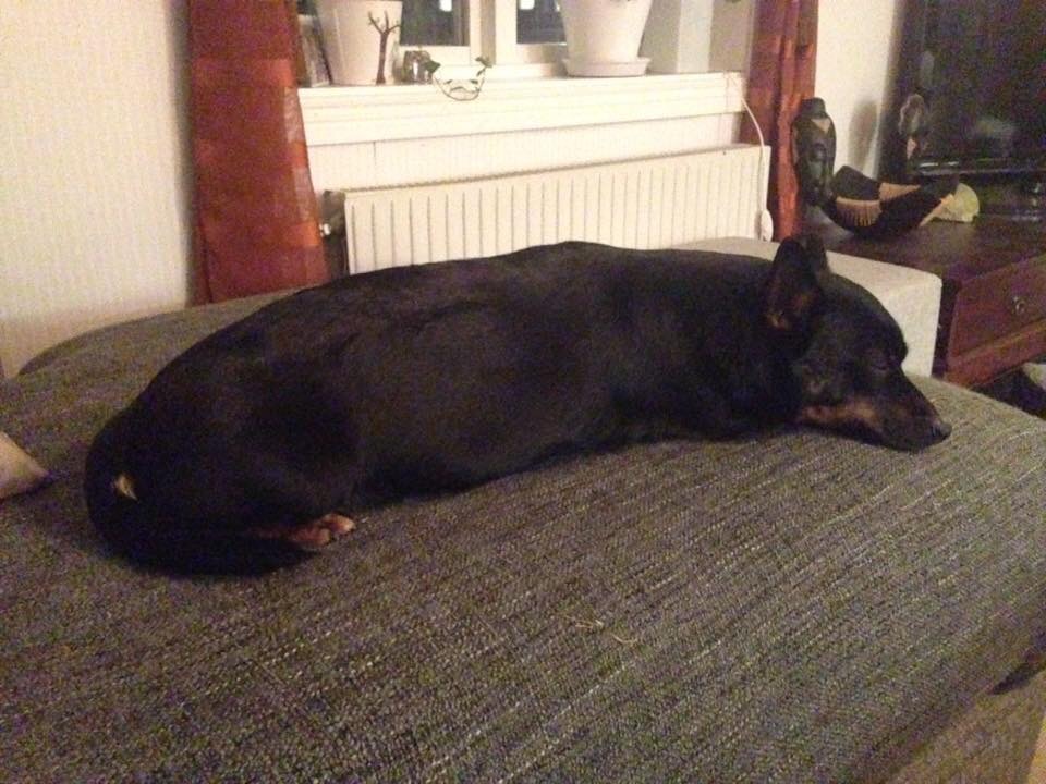 Nu har Tuvas midjemått ökat 3 cm. Hon hävdar bestämt att magen är i vägen och tar för mycket plats. Hoppa upp i soffan är besvärligare och kommer man åt hennes mage så stånkar hon. Jag har försökt förklara för henne att det dessutom är tre veckor kvar…! 😅