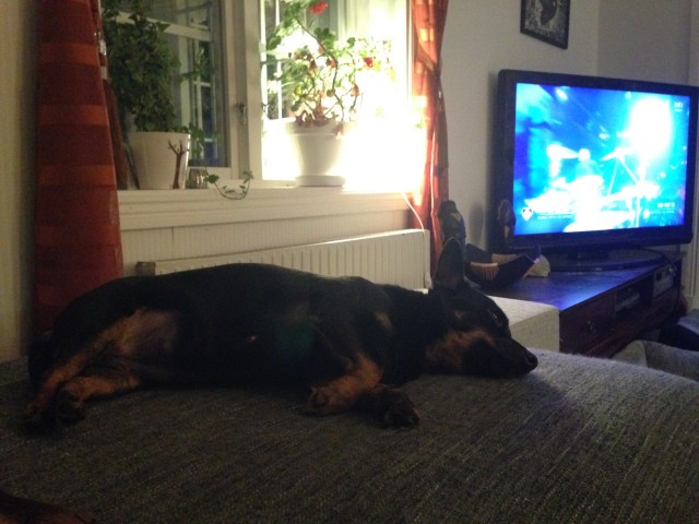 Nu är Tuva dräktig i sin 5 vecka och det har börjat synas lite smått på henne. Direkt efter höglöpets slut så blev hon mer närgången och behövande än vanligt (tänkte skriva ”mammig”, men hur låter det egentligen? 😉 ). Mellan 2 till 4 veckor in i dräktigheten så har hon ätit lite dåligt med sin kulmen vid tredje veckan och tredje dagen då hon kräktes. Det är vanligt att tikar mår illa och kräks när äggen ska fästa i livmodern så känns som ett gott tecken i det här fallet. Nu äter Tuva bra igen och det börjar synas en liten kula på nedre delen av magen. Från 4 veckan har tissarna också blivit rosa så nu håller vi tummarna att det fortsätter i samma riktning och välmående. 🙂