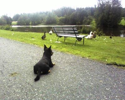 Jaktinstinkten är väldigt liten. Han har klart intresse för får och kor men är lärd genom uppväxten att ignorerar hästar. Han är följsam och har naturligt koll på ”sin flock” utomhus och springer inte iväg. Vallanlagstest är planerat till slutet av maj vilket vi ser mycket fram emot.
